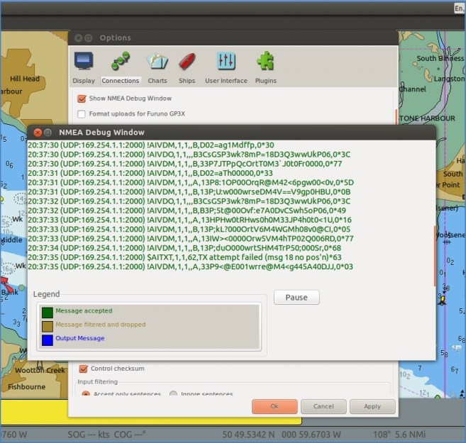 A continuación, haga clic en aceptar y podrá ver las señales AIS y los datos de su instrumento en OpenCPN.