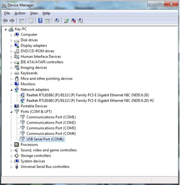 Después de conectar la interfaz USB a su ordenador, abra el administrador de dispositivos para encontrar el puerto COM que ha sido asignado a la interfaz USB de su producto Digital Yacht.