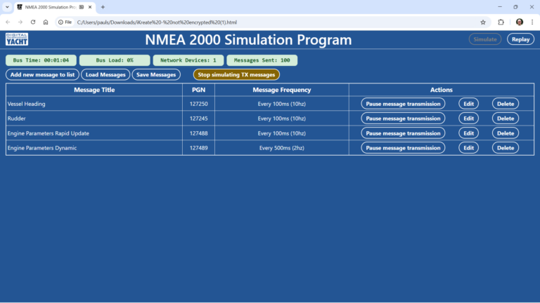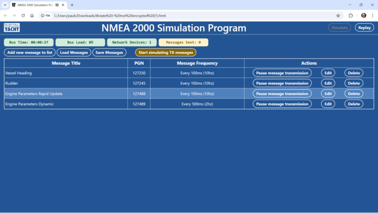 El primer simulador de datos NMEA 2000 multiplataforma basado en navegador del mundo