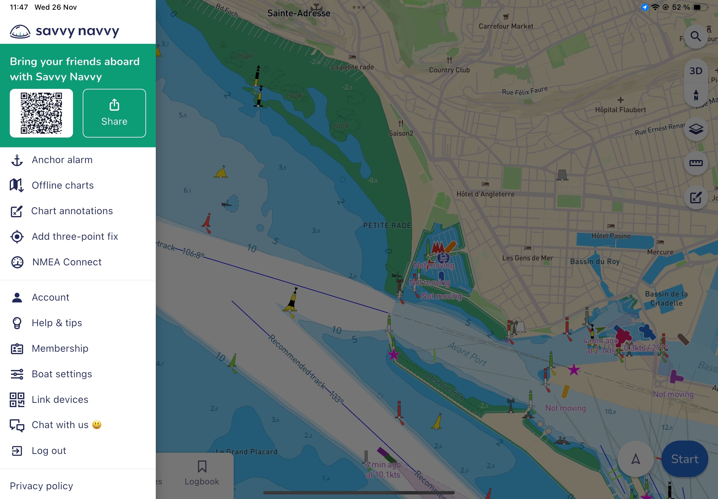 Savvy Navvy es una aplicación de navegación marítima, básicamente un «Google Maps para barcos». Desde noviembre de 2025, es posible visualizar datos AIS y NMEA en Savvy Navvy.